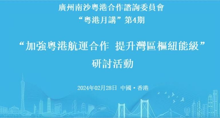 2 月 28  日下午,廣州南沙粵港合作諮詢委員會(以下簡稱 “ 咨委會” )品牌交流活動 “‘粵港月講’(第四期)——加強 粵港航運合作 提升灣區樞紐能級”在香港成功舉辦, 由咨委會 秘書處(南沙開發區港澳辦)、香港工作站及交通運輸與口岸專 項工作組(南沙區商務局)聯合主辦。全國政協副主席、咨委會顧問梁振英,南沙區委常委、南沙海外聯誼會會長阮曉紅,南沙 開發區管委會副主任胡春雷,南沙區政協副主席、商務局局長謝 曉暉,以及香港船東會主席 Angad Banga ,香港船東會中國委員 會主席趙式慶等咨委會委員、業界專家,南沙區相關部門、兩地企業、香港商協會和媒體代表等近百人參加活動。